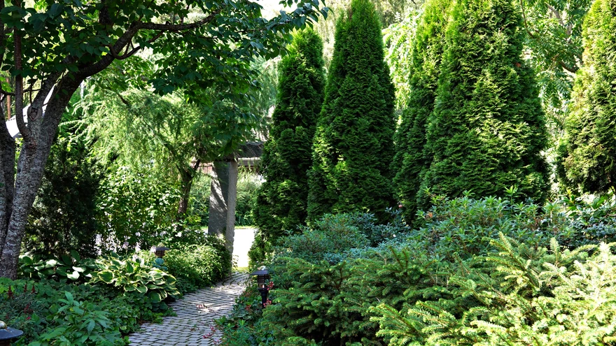 | foto: Paula Ritanen-NärhiOkaspuude ja -põõsaste aed on igihaljas aasta läbi. Ühes koduaias kujundatakse okaspuid lõikamisega.
