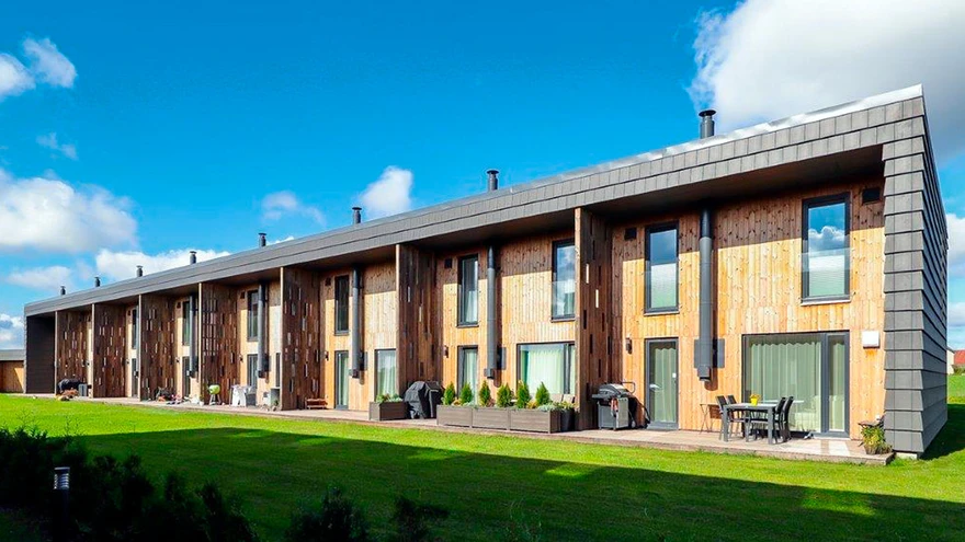 Käokella ridaelamus on arhitektid kasutanud fassaadikattena servakuti üksteise peal olevaid betoonplaate. | foto: TootjaUue trendina levib järjest enam katusematerjalide kasutamine fassaadidel.
