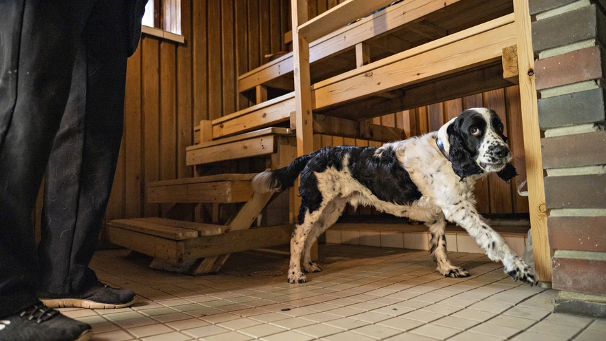 Hallituskoer Tarmo ootab uuringukohas talle antavat käsklust. | foto: Vesa TyniKui suvilas käies oled hakanud tundma imelikku haisu, tasub selle põhjus välja selgitada. Vanaema tares olev hais viis selleni, et Lilli ja Juha olid sunnitud seal kapitaalremondi tegema.