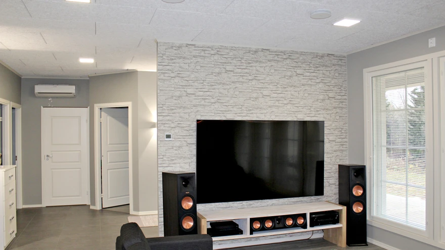 Valge puitkiust akustiline lagi. Ruumiakustika märkimisväärseks parandamiseks läheb vaja üsna rohkelt helisummutusmaterjale, tüüpiliselt vähemalt poole põrandapindala ulatuses. | foto: Teija AaltonenKodused igapäevatoimetused tekitavad igasuguseid helisid ja ka väljastpoolt maja võib sisse kanduda igasuguseid hääli. Müraks nimetame mistahes häält või heli siis, kui see on häiriv. Õnneks saab helisid juhtida, suunata, summutada ja kuuldamatuks teha. Akustiline projekteerimine ongi justkui kaleidoskoop, millega saab korda luua helide virvarris.