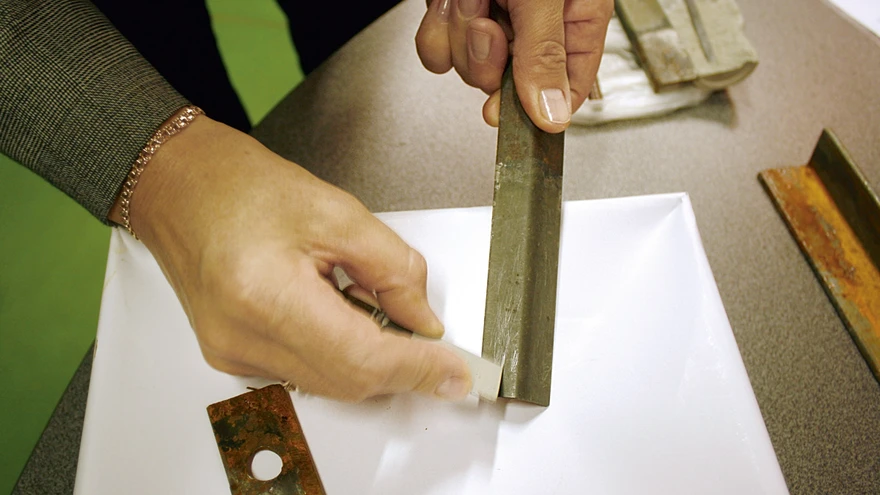 Rooste on eemaldatud, kui kaitsevahendiga töödeldud metalli kriimustades ilmub nähtavale haljas raud. | foto: Ain Alvela(Maaleht)Rooste sööb metalli kiiremini kui me tavaliselt arvata oskame. Nii võib ehe ja haljas metall niiskes ja soojas keskkonnas seistes juba vaevalt nädalakesega pruunika korrosioonikihiga kattuda. Ja see on kindel märk sellest, et roostetamise protsess on alanud ja metall vajab kiires korras kaitset.