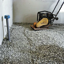 * Vahtklaasipuru paigaldamise järel pind tihendati kuni ruumi servadeni pinnasetihendajaga; kõnealusel juhtumil kaalus tihendaja 75 kilo, mille raskusest piisas täielikult. Seejärel paigaldati veel üks kiht vahtklaasipuru ja pind vibreeriti läbi veel kaks korda.