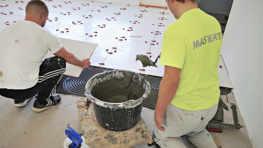 Plaadisegu põrandale kandmiseks peab kasutama piisavalt suure hambaga segukammi, et plaadid 100 % aluspõrandale nakkuksid. | foto: Jorma PiisinenPõrandaplaatide mõõdud on kõvasti kasvanud – 60 × 60 cm plaadid on juba täiesti tavapärane toode. Põrandaplaatide üha suurem eelistamine pole ka ime, sest plaatpõrand näeb ilus välja, see on kauakestev ja kergesti hooldatav.