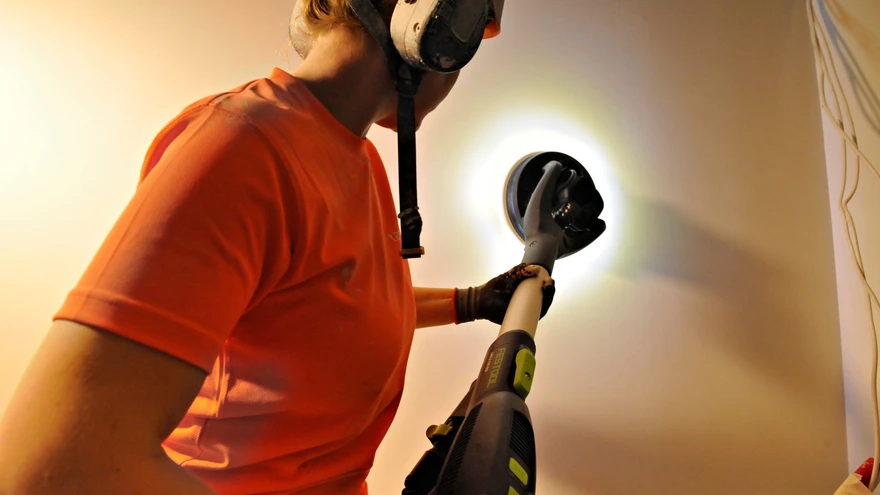| foto: Juho HuttulaSeinte ja lagede lihvimise raskeks tööks saab abiks võtta varslihvimismasina, mida ehitusvaldkonnas ka kaelkirjakuks kutsutakse. TMil oli võimalus kogeda kahe erineva varslihvimismasina tööd kahel erineval tööobjektil.